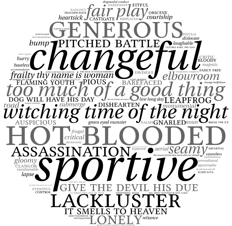 Printing came to England less than a century before Shakespeare’s birth, and until William Caxton, who brought the printing press to England, encountered the problem of the lack of standardization in punctuation, spelling, and other language-related issues, no one had worried too much about these things. The standardization of English was still being worked out during Shakespeare’s lifetime, and the creative bard took full advantage of the situation, coining not only phrases that we still use today but even words! Some of Shakespeare’s greatest to our language are only two syllables long!