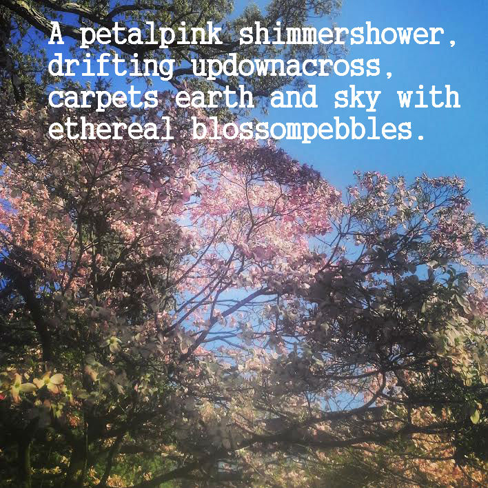 (In other words, petals are falling from the crabapple tree. And when the Graceful Grammarian sees this happening, she writes a short poem about it!)