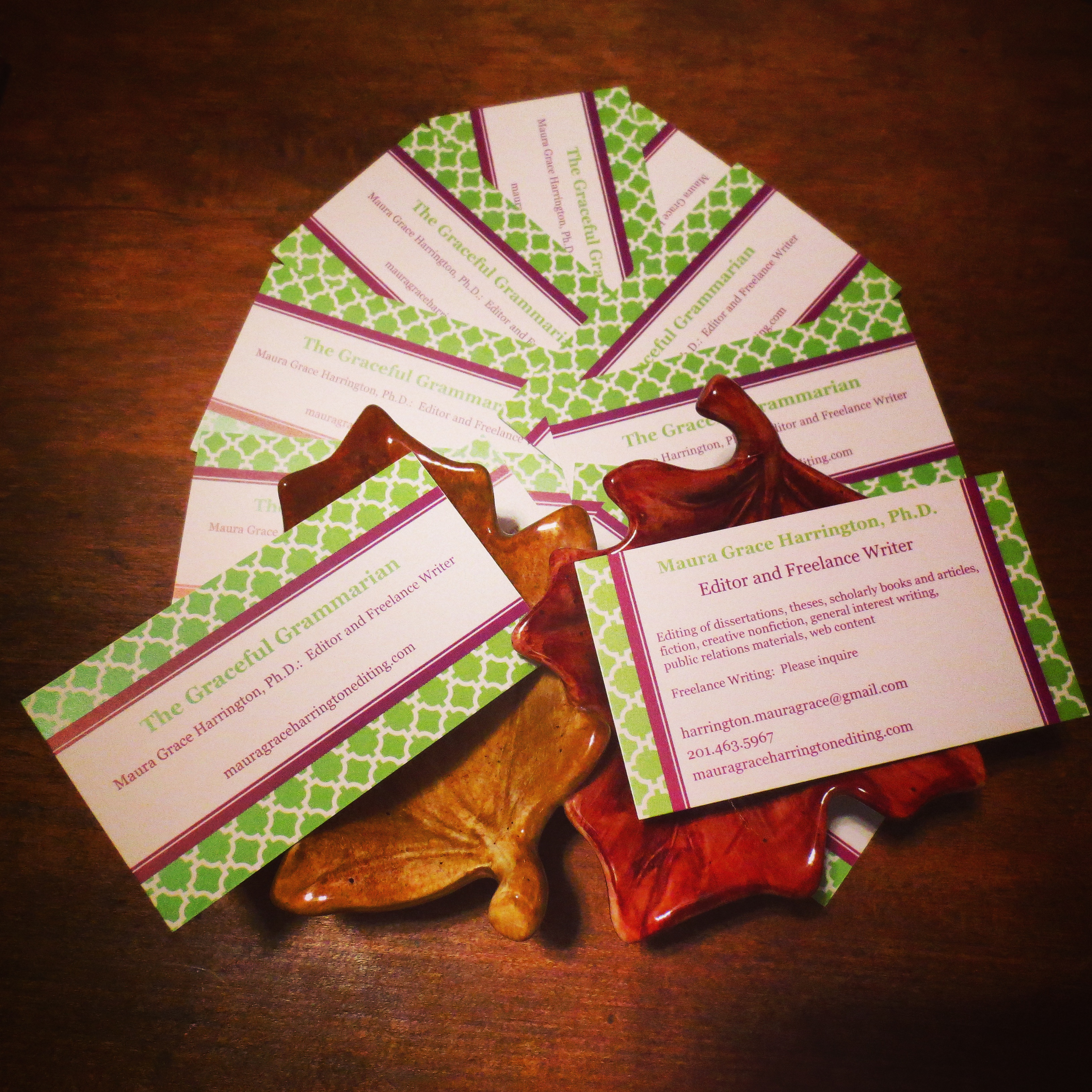 Cards are in! Share this photo to let your friends know about the editing and writing services of The Graceful Grammarian. If you’d like some cards to distribute to friends, family, and colleagues, inbox me! These cards also make beautiful autumn table decor, as you can see.